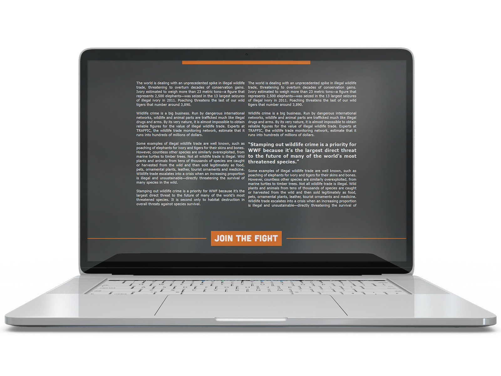Collateral for a campaign hosted by WWF to combat the Exotic Pet Trade. Print and digital mediums were combined to create a strong and broad campaign. Animation was included to create a well rounded and strong campaign presence.